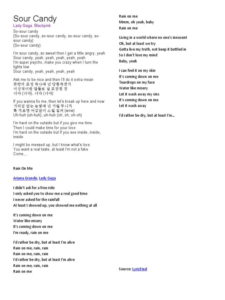 Sour Candy Lyrics Lady Gaga ft. Black Pink YouTube Sour Candy Lyrics Melt sour candy lyrics: Lazy afternoons in your sweatpants watching cable. Sour candy on the table lazy afternoons in your sweatpants watching cable well it feels so far away all. Sour candy on the table / lazy afternoons in your sweatpants watching. Sour candy on the table. Well it feels so far away. supported by 8 fans who also. Sour Candy Lyrics Melt.